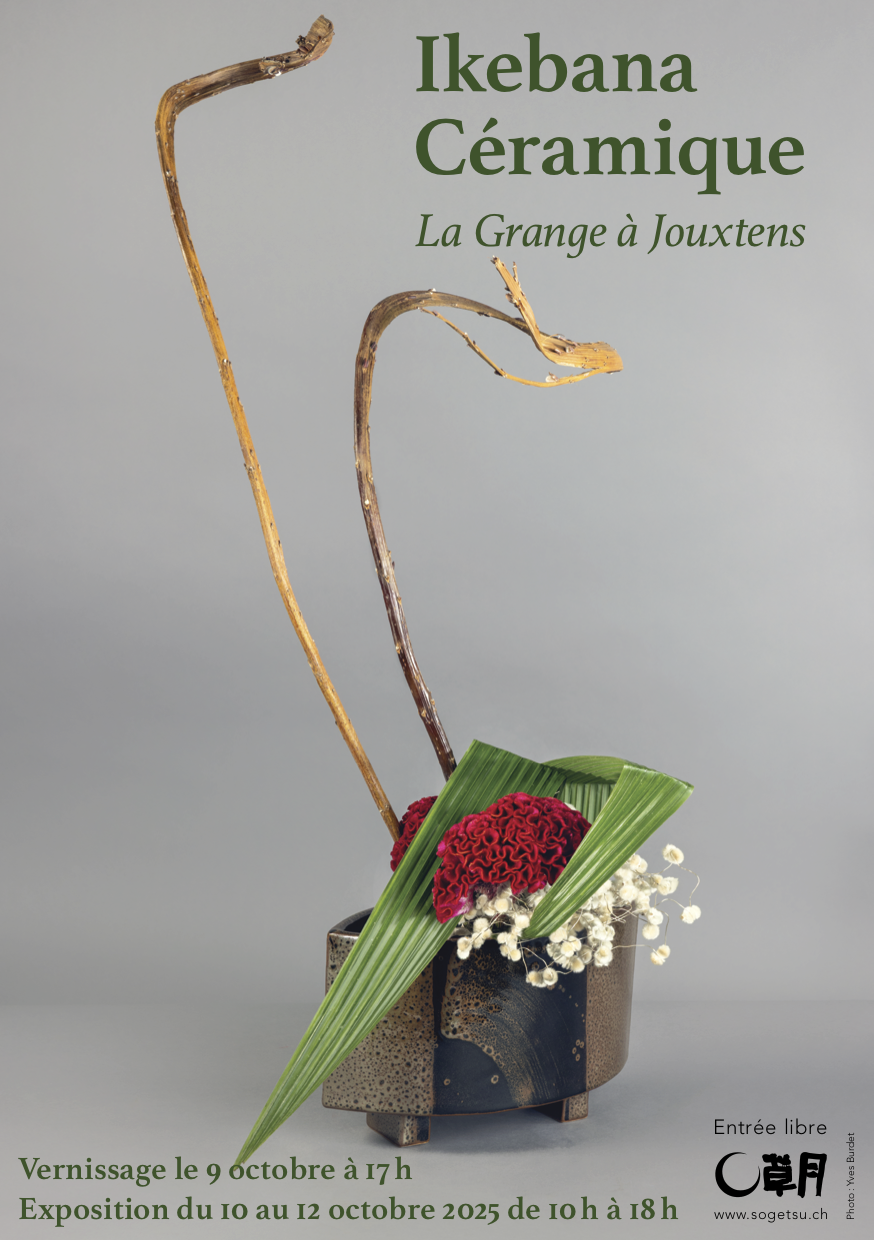 Du 9 au 12 octobre (vernissage 9 octobre, 17h), enseignantes (Milena Michot, Mireille Cochard, Inès Massin, Corinne Bohnenblust) et élèves de l’école Sogetsu d’art floral japonais (sogetsu.ch) sont de retour à la Grange à Jouxtens pour exposer leurs créations dans la plus pure tradition de l’Ikebana et présenter des ateliers de démonstration. Elle s’associent pour l’occasion avec deux amies céramistes Anouk Bailly et Isabelle Imobersteg (www.ceramicthierrens.ch) qui aiment à jouer avec l’air, l’eau et le feu pour créer des oeuvres originales. Certaines d’entre elles serviront d’écrins aux Ikebana et d’autres, exposées séparément, seront disponibles pour la vente.