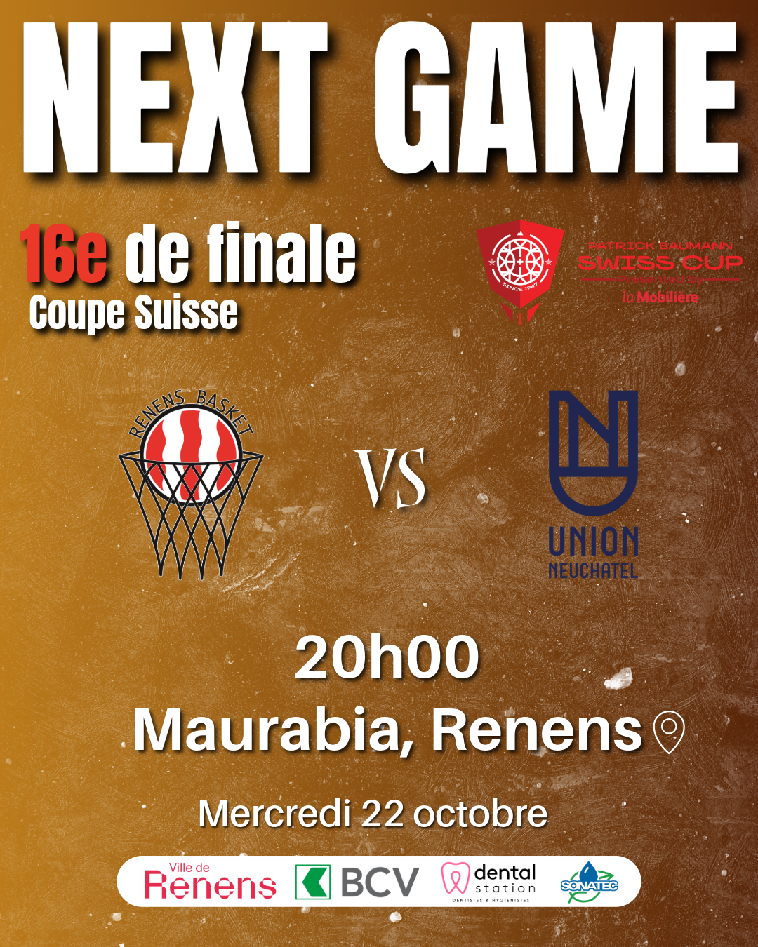 Ne manquez pas l'occasion de soutenir le Renens Basket lors des 16e de finale de la Coupe Suisse!